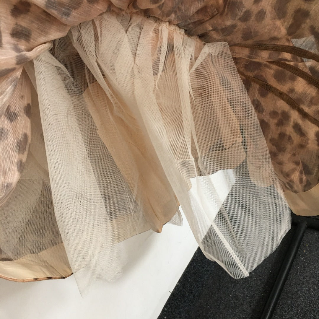 • ZIM* Bubble leopard print long-sleeved shirt + high-waist fishtail skirt