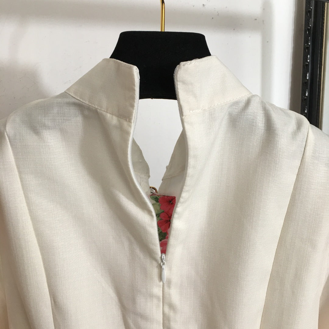 Zimmerma** new style temperament red flower print stand collar long sleeve dress with belt